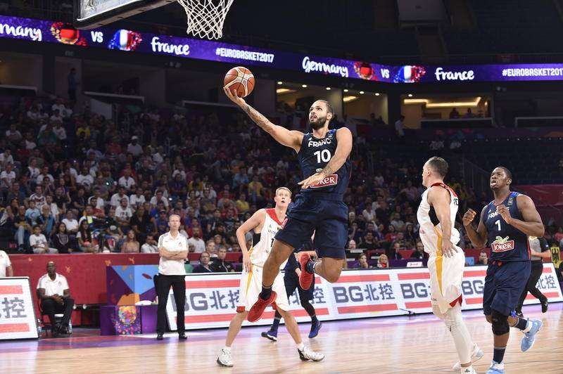 Lors de la dernière confrontation entre la France et l’Allemagne dans le cadre d’un match à élimination directe en 2001, un homme, Dirk Nowitzki, avait, à lui tout seul ou presque, propulsé son équipe en demi-finale de l’EuroBasket. 16 ans plus tard, les Bleus voulaient éviter de subir la loi d’un nouveau NBAer allemand, Denis Schröder. Le meneur des Hawks, deuxième marqueur du tournoi, était au cœur de toutes les attentions et, pendant 18 minutes en première mi-temps, il a été parfaitement contenu, tandis que de l’autre côté du terrain les troupes de Vincent Collet avaient retrouvé la volonté de se passer la balle et de faire preuve de patience dans l’exécution des systèmes.