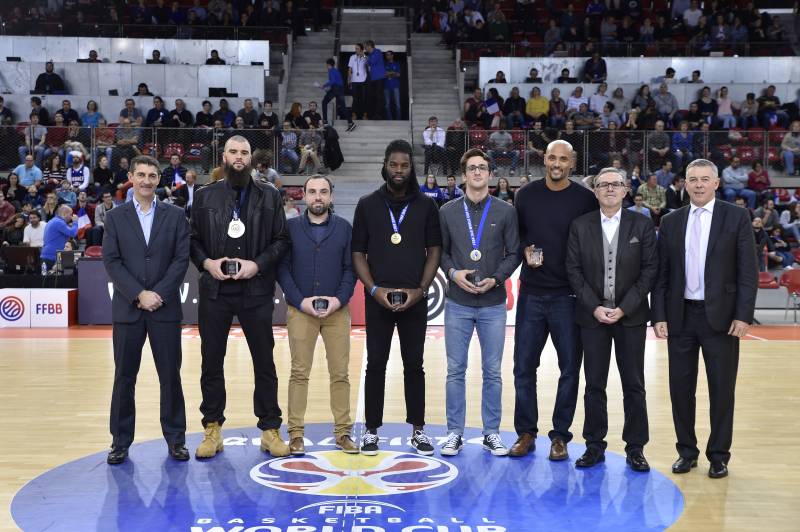 Les joueurs et leur staff ont reçu des mains du Président de la FFBB, Jean Pierre Siutat, et de Patrick Beesley, Directeur Technique National, un trophée commémoratif.