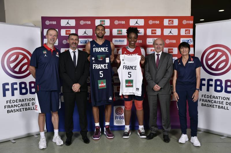 Une occasion idéale pour présenter officiellement la nouvelle tunique tricolore, en présence de Jean-Pierre Siutat, Président de la FFBB, de Dominique Mahé, Président du Groupe MAIF, mais également des deux entraîneurs des Équipes de France, Vincent Collet et Valérie Garnier, accompagnés de leur capitaine respectif, Nicolas Batum et Endy Miyem.