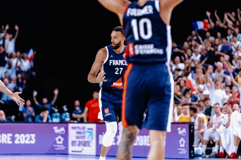 0/3 avec Cholet Basket en Pro A. 0/14 avec le Jazz et les Wolves en 10 saisons de NBA. 0/4 en Équipe de France. Et puis le 2 août 2023, contre le Monténégro, à 6,75 m face au cercle, à la suite d'une remise en jeu ligne de fond, Rudy Gobert a fait mouche. Le premier trois-points de sa carrière professionnelle. Un tir pris sous les encouragements du public de la Sud de France Arena et qui provoqua l’hilarité générale chez ses coéquipiers, sur le banc comme sur le terrain. "C’est peut-être une mauvaise nouvelle pour la suite", rigolait toujours Evan Fournier en conférence de presse, qui s’empressait rapidement de préciser que la fin de sa carrière n’était pas pour tout de suite. "Le pari c’est s’il met un step-back à trois-points."