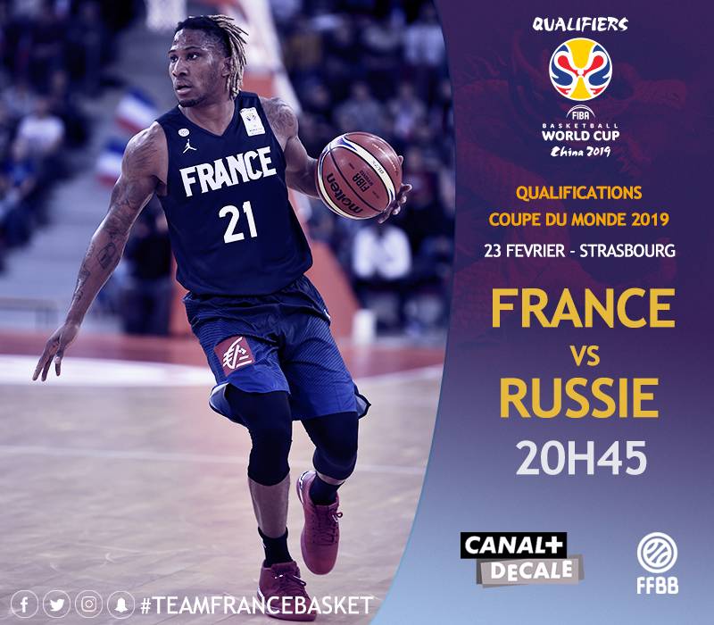 L'Equipe de France accueille ce soir la Russie à 20h45 au Rhénus Sport de Strasbourg pour son troisième match de qualification à la Coupe du Monde 2019. Pour Vincent Collet et ses hommes l'enjeu est simple : une victoire pour sécuriser la première place du groupe E avant le début des matchs retour dimanche contre la Belgique à Nancy.