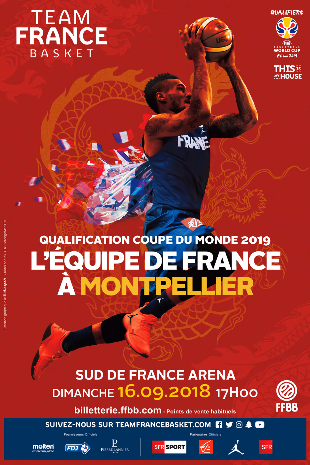 Assurée de disputer le deuxième tour des qualifications à la Coupe du Monde 2019, l’Équipe de France masculine jouera son prochain match à domicile à la Sud de France Arena de Montpellier le dimanche 16 septembre 2018 (17h00). Les places pour venir soutenir les Bleus sont désormais disponibles à la vente.