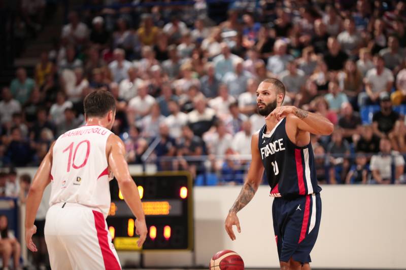 L’Equipe de France faisait ensuite un peu mieux vivre la balle mais au détriment de son intensité défensive. Korkmaz et Osman retrouvaient quelques libertés et le staff technique avait tôt fait de rappeler les spécialistes Gobert et Ntilikina pour changer le ton. Opération réussie et facilitée par la sortie des deux principales menaces d’Ufuk Sarica. Une éclaircie insuffisante pour faire un écart (53-48), le maigre matelas disparaissant aussi vite qu’il était apparu. La faute aux shooteurs turcs, parfaitement mis en valeur par des systèmes bien exécutés et pas assez contestés par des Bleus qui encaissaient un violent 15-3 (56-63). La pluie de tirs de loin ne s’arrêtait plus de tomber. Pas assez pour rafraîchir un Palais des Sports écrasé par la chaleur mais suffisante pour mettre au pas une Equipe de France qui a désormais 48 heures pour recharger les batteries et hausser le ton mercredi soir à Toulouse, contre la Tunisie.
