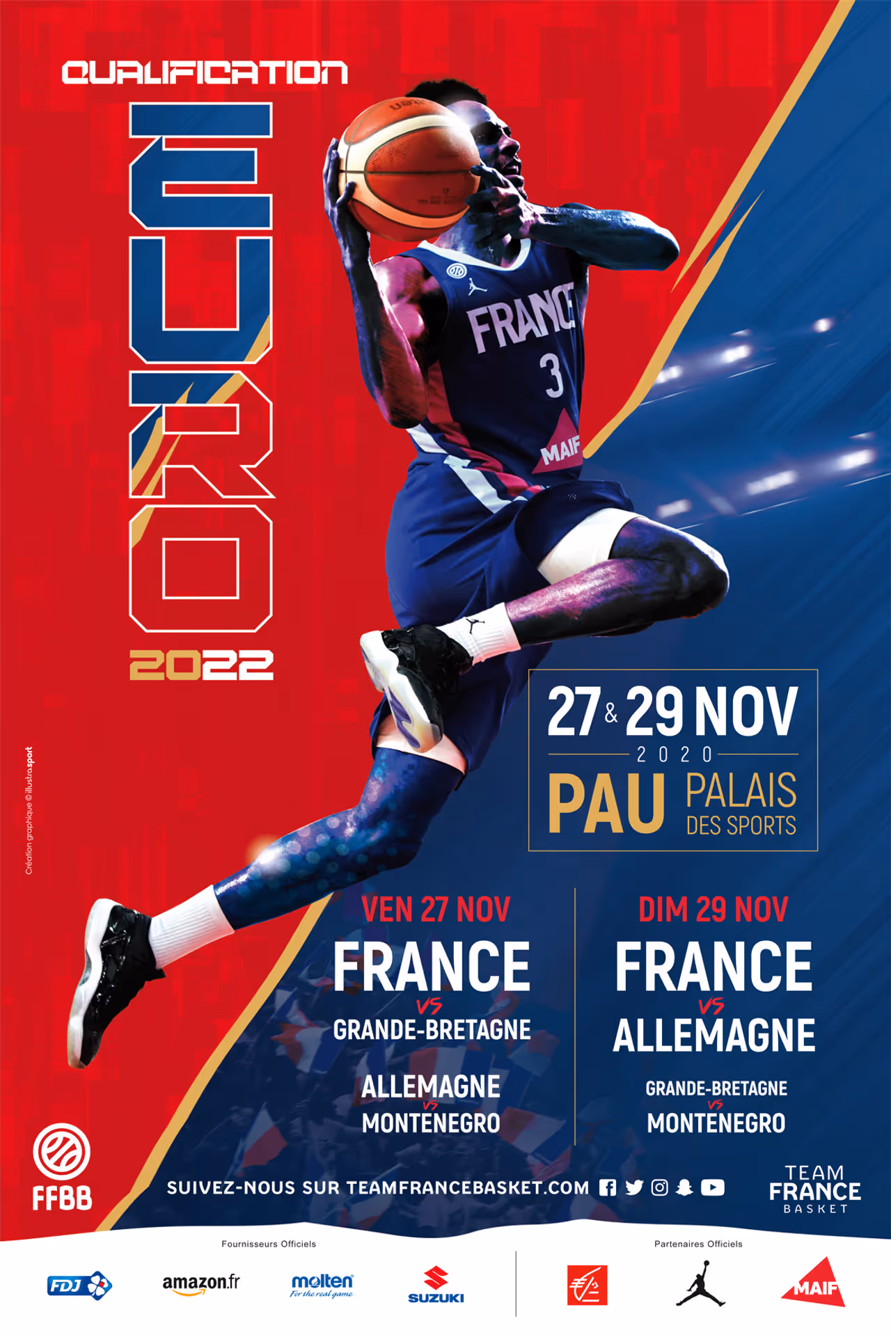 Alors que l’Équipe de France masculine compte, à ce jour, une victoire et une défaite dans le groupe G de qualification à l’EuroBasket 2022 (défaite contre l’Allemagne 83-69, et victoire contre le Monténégro 85-66), la France a été retenue pour organiser les matches de son groupe qui se dérouleront les 27 et 29 novembre prochains, au Palais des Sports de Pau.