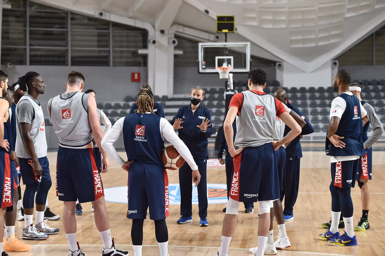 Installés à l’hôtel Hilton de la capitale monténégrine, les Bleus ont effectué un nouveau test PCR ce midi organisé par la FIBA, passage désormais obligé pour ne pas mettre à mal à la bulle sanitaire mise en place. Les joueurs de Vincent Collet ont ensuite rejoint la Bemax Arena pour leur premier entraînement collectif, l'antre du Buducnost Podgorica. Au programme du jour, mise en place des systèmes de jeu à 5 contre 0 puis 5 contre 5.