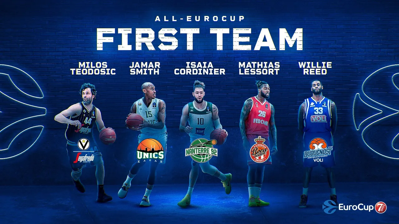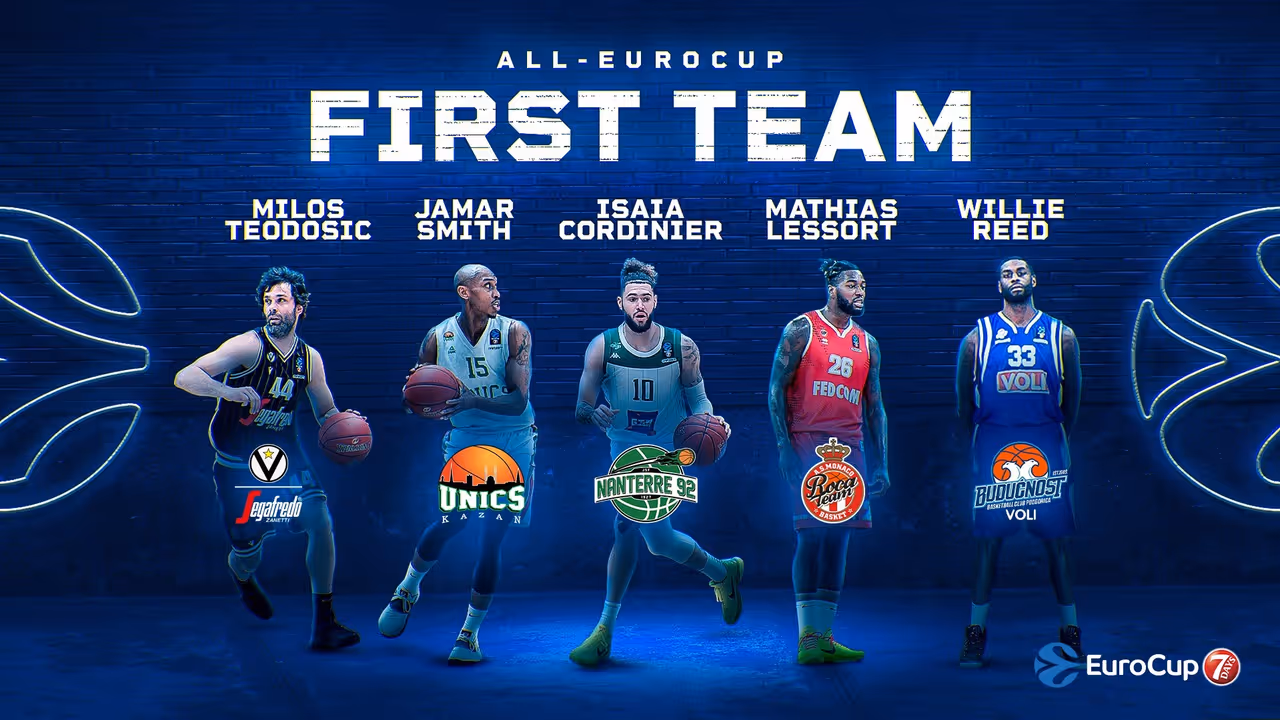 A 24 ans, Isaïa Cordinier est le jour le plus jeune de ce cinq idéal. Si Nanterre n’a pas réussi à rallier le les quarts de finale de la compétition, ils ont été en course jusqu’à la dernière journée du top 16, en grande partie du fait de l’omniprésence de son arrière. Deuxième meilleure évaluation de l’EuroCup Cordinier est le joueur qui passait le plus de temps sur les parquets et pointait dans le top 10 au scoring (15,8 pts) et aux interceptions (1,7).
