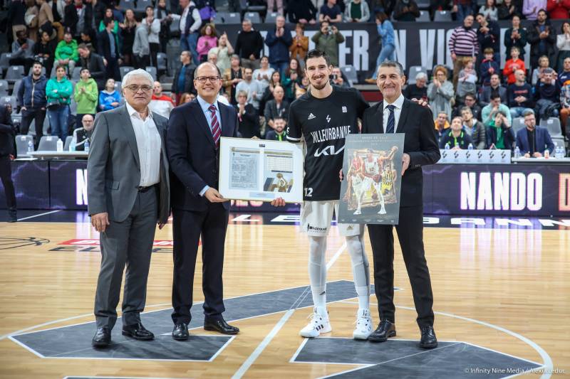 Mardi dernier, Nando De Colo est devenu le meilleur marqueur de l’histoire des Coupes d’Europe. Le Président de la FFBB, Jean-Pierre Siutat, et le Secrétaire Général de la FIBA, Andreas Zagklis, étaient présents à Villeurbanne, ce dimanche, pour saluer cette performance exceptionnelle.