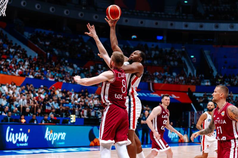 Paradoxalement c’est d’ailleurs dans cet exercice que la France faisait le plus de dégâts avec un spectaculaire 10/14 à longue distance lors de la première mi-temps. Un festival pyrotechnique qui aurait pu enterrer n’importe quel adversaire, mais pas une Lettonie toute heureuse de se lancer dans un concours de tirs dans lequel elle excelle. Les frères Bertans relevaient le défi (18 pts) et accompagnés du costaud estampillé Euroleague Rolands Smits (11 pts) et d’un duo de meneurs Zagars-Zoriks à 100% de réussite (7/7), ils tenaient tête aux vice-champions olympiques (53-49), punissant chaque hésitation défensive ou chaque aide incontrôlée.